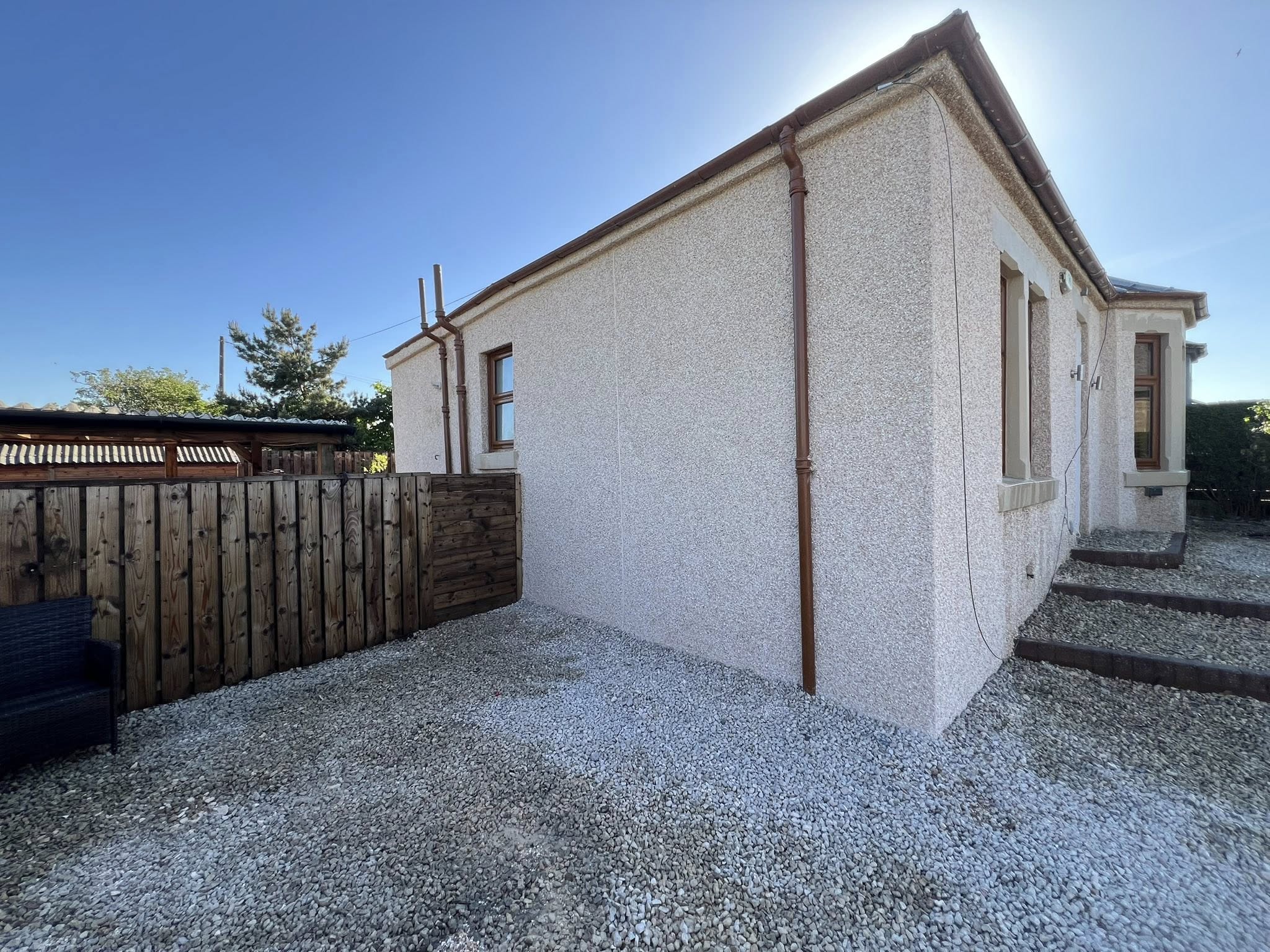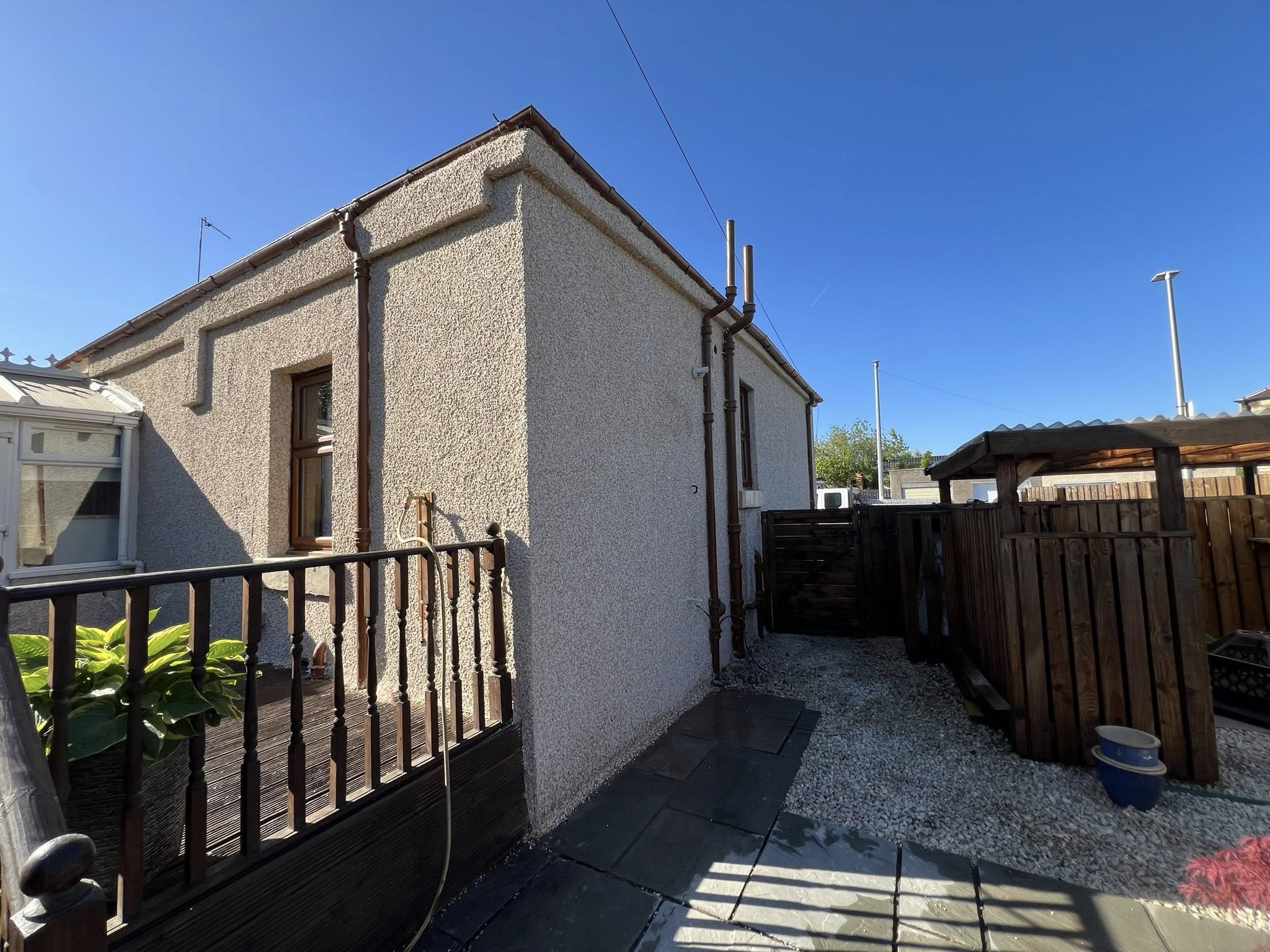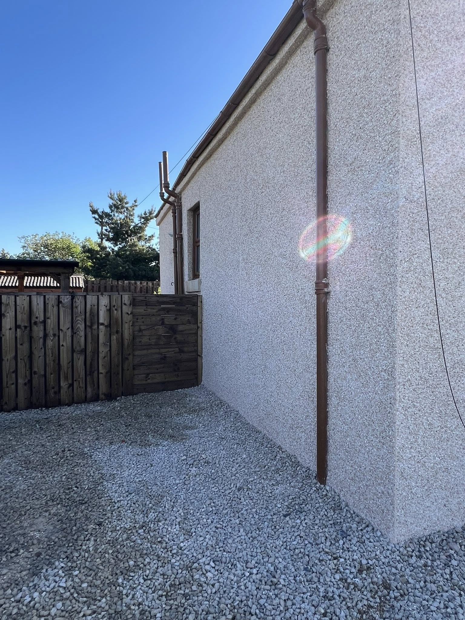 Install and clear gutters and downpipes to ensure rainwater management and protection.